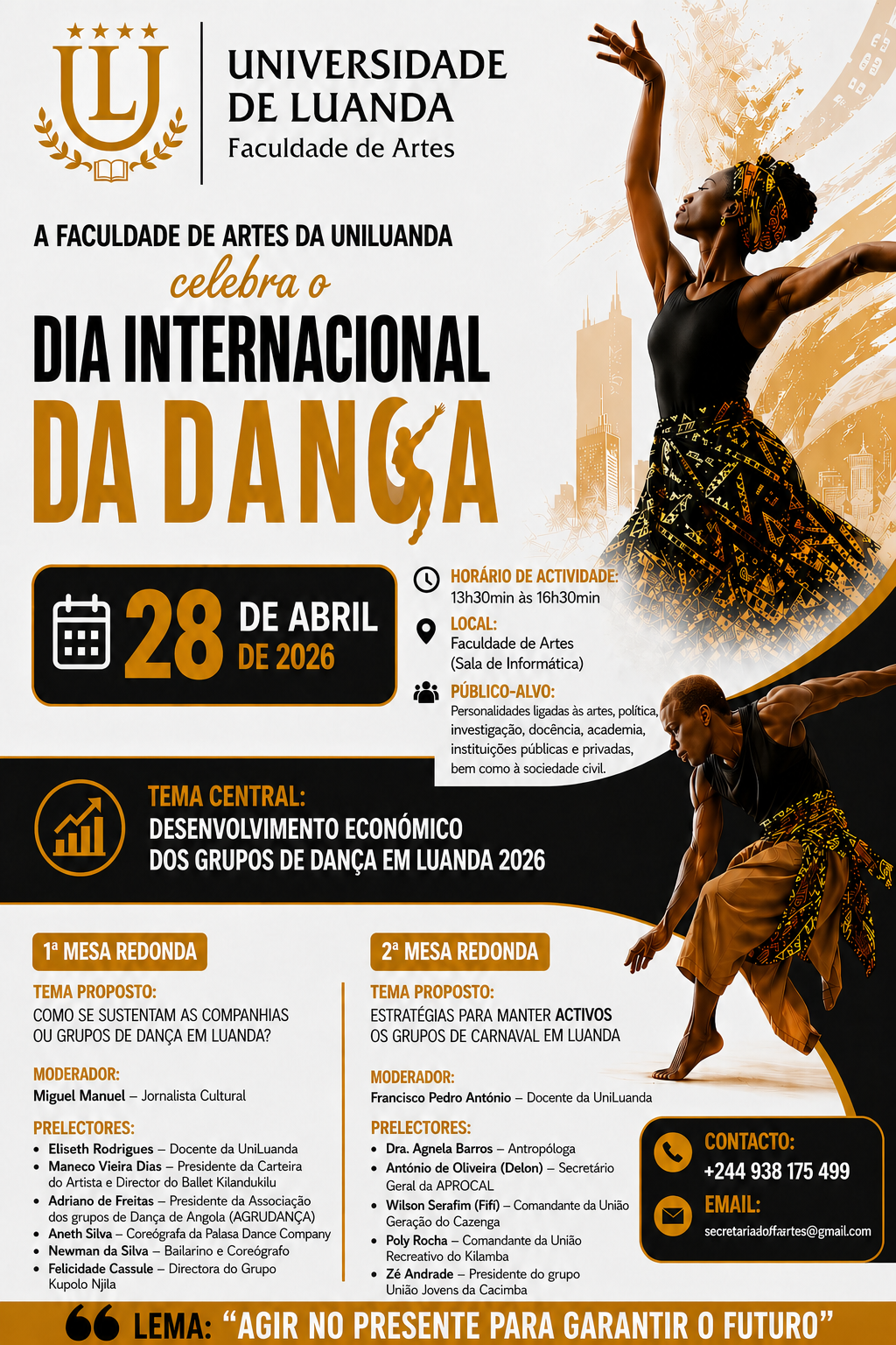 “Descubra a sua paixão nas artes e faça história na Faculdade de Artes da Universidade de Luanda, onde o palco, a tela, a música e a moda unem-se para criar um mundo de possibilidades criativas!”